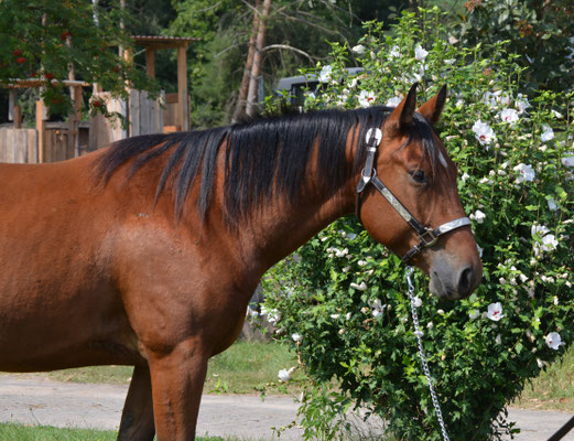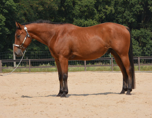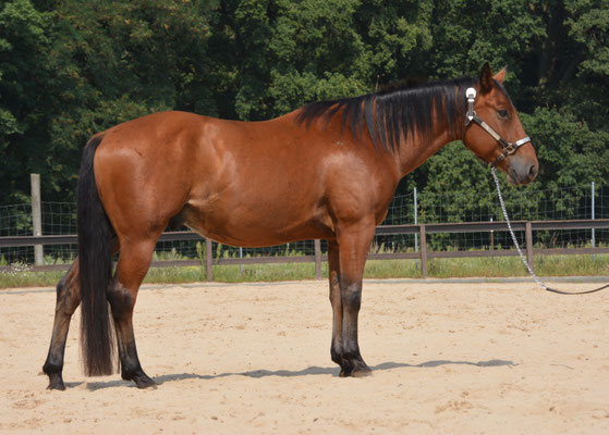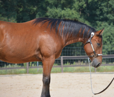 Als junges Pferd war sie erfolgreich in der Reining, Ranchriding und sogar Westernriding. Sie vererbt ihre schönen raumgreifenden Bewegungen und ihren hübschen Kopf.