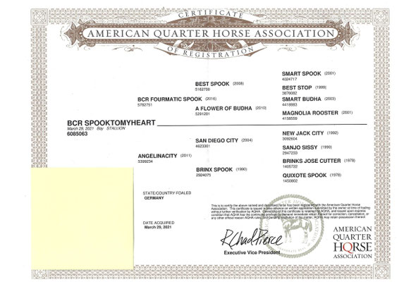 BCR Fourmatic Spook ist der Papa und die Mutter ist Paula. Aufs Paulas Papier finden sich Größen wie reds Gonna Rein, Colonel Freckles und Broadway BH.